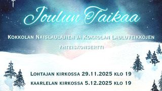 Kokkolan joulunodotus kutsuu shoppailemaan, herkuttelemaan, tekemään löytöjä ja nauttimaan kulttuurista tai vain vanhanajan joulun tunnelmasta. Joulunajan tapahtumia Kokkolan Joulunavauksesta alkaen on kerättynä nyt yhden linkin taakse, klikkaa siis tapahtumakalenteriin ja laskeudu joulun tunnelmaan. Kauneimmat joululaulut tilaisuuksien tietoja ja Jouluradion löydät täältä.