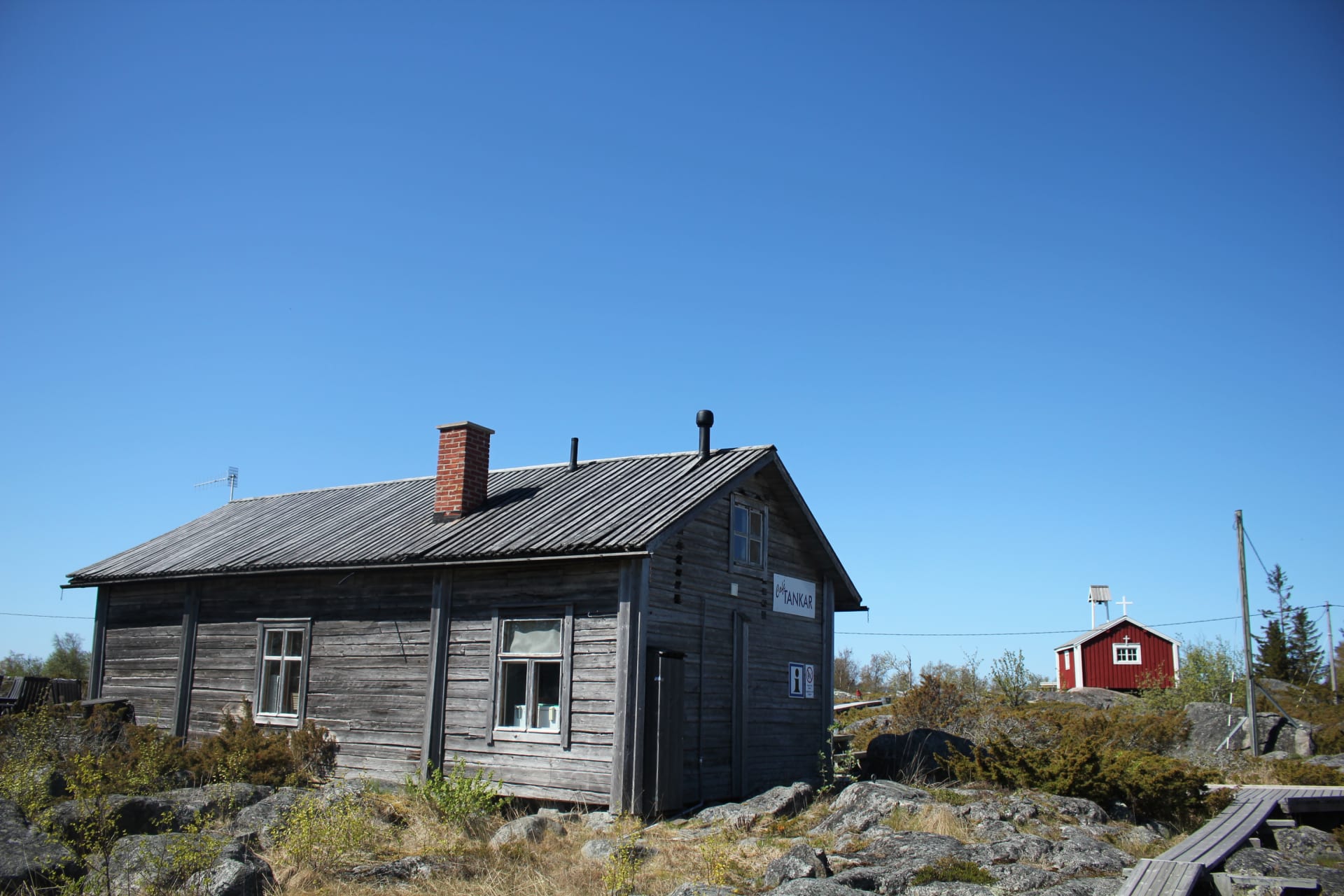 Tankar Café attends the people visiting the island of Tankar. We serve coffee, tea, sweat and salty pastries, soft drinks, bear, wine, ice cream, creamy salmon soup for lunch and daily chancing dinner. Island of Tankar in located on the sea, about 17 kms outside the city of Kokkola. You can reach the island by m/s Jenny or by own boat.